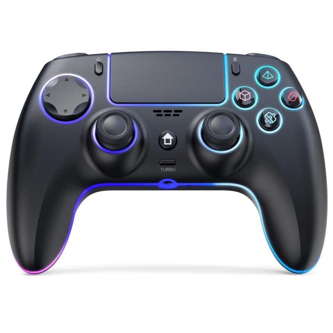 This feature-packed wireless gaming controller gives you everything you need to play without limits. Designed for PS5 compatibility and PC versatility, it delivers responsive controls, immersive vibration feedback, ergonomic comfort, and vibrant RGB lighting—all in one sleek design. Whether you’re battling, racing, or exploring open worlds, this controller brings precision, style, and next-level immersion to every game.